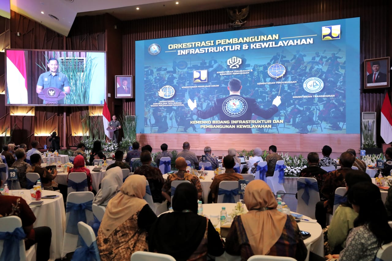Dalam sambutannya, Menko AHY mengungkapkan empat prioritas pembangunan infrastruktur yang perlu menjadi perhatian bersama dalam merancang dan mengimplementasikan kebijakan pembangunan nasional.